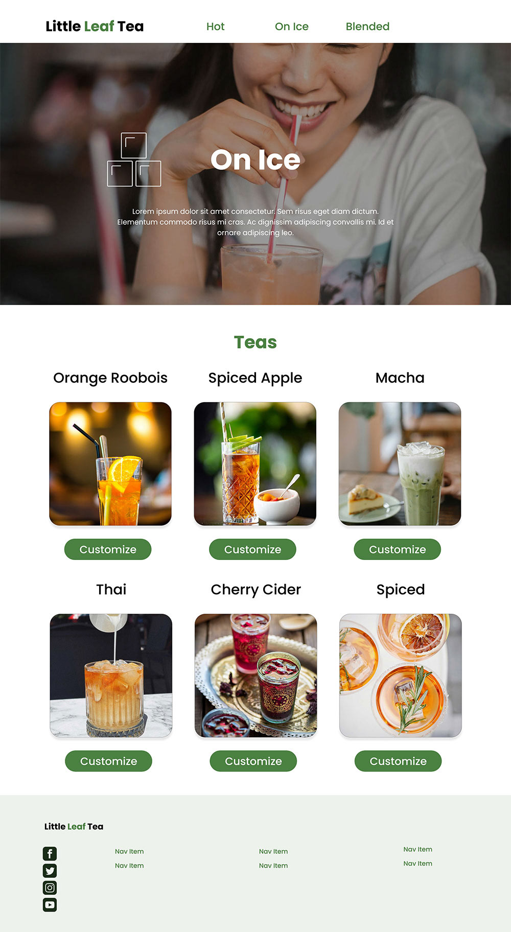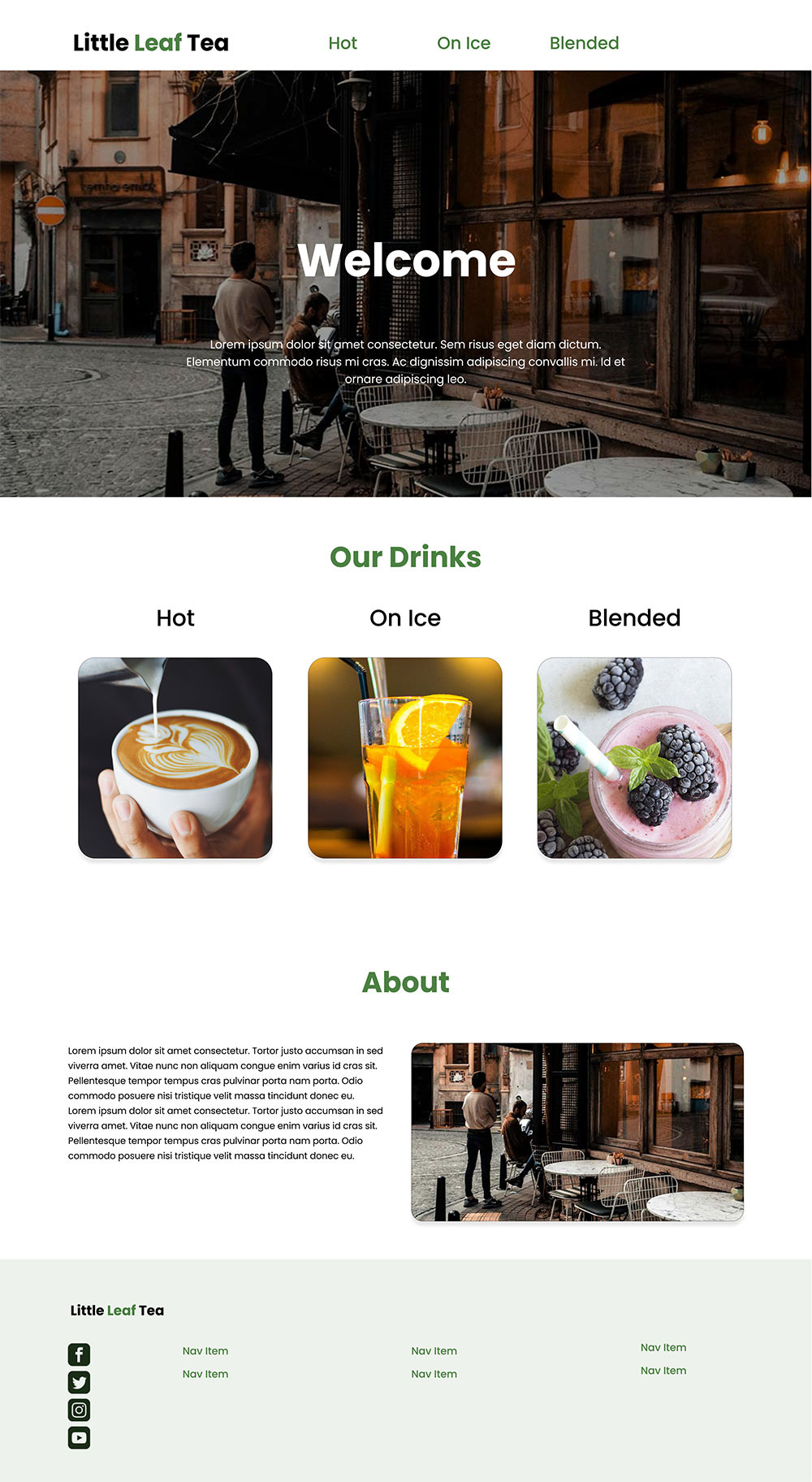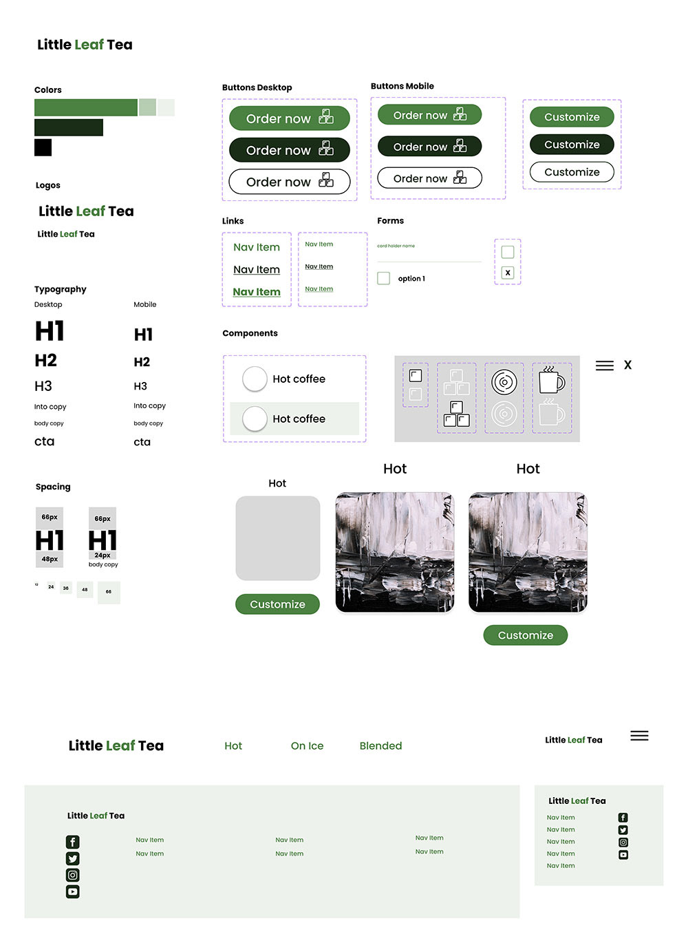Little Leaf Tea is a fictional company. All vector graphics and elements were created in Figma.